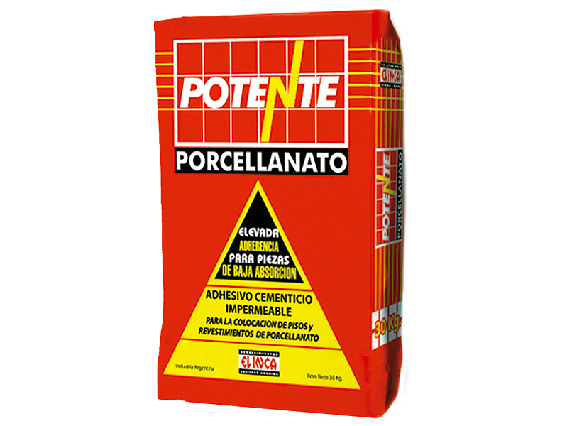 Adhesivo cementicio gris impermeable ideal para la colocación de porcellanatos y revestimientos de baja absorción.